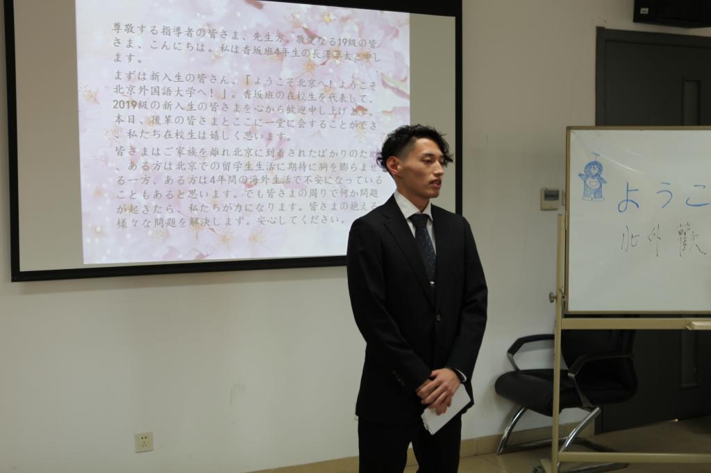李冰主任代表公司,向新同学表达了热烈的欢迎。他介绍了北外的历史发展和办学特色,并表示公司会尽最大努力为同学们创造良好的生活环境和学习环境。