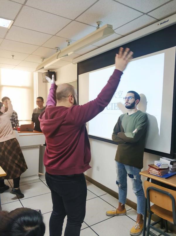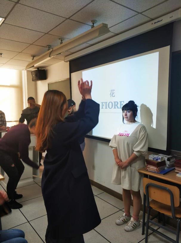 第一个环节是自我介绍,在场的同学各自用所学的外语简要地介绍了自己的情况及爱好。意大利人说汉语,中国人说意大利语。第二个环节是做游戏。最有意思的是“看动作猜词”的游戏和“按字母填词”的游戏。大家通过相互帮助,找到答案,气氛火热,一些小错误也引起大家善意的笑声。每个参加游戏的同学都得到了富有中国特色的文创小礼品。