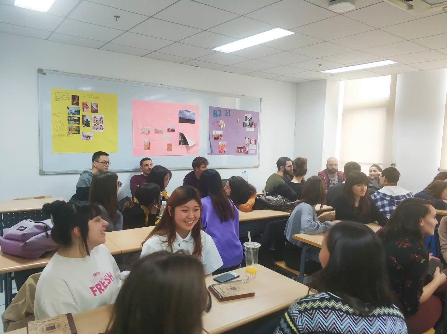 当天下午,校园里春光明媚,鲜花盛开;教室内欢声笑语、热闹非凡。二十余名意大利职工和十余名意大利语专业的中国员工齐聚一堂,相谈甚欢。