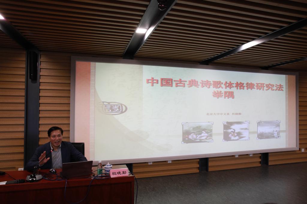 2021年5月14日下午,北京大学中文系主任、古代文学教授、博士生导师杜晓勤先生在公司图书馆四层学术报告厅为全校师生带来了题为《中国古典诗歌体格律研究法举隅》的讲座,讲座由ladbrokes立博经理詹福瑞教授主持。