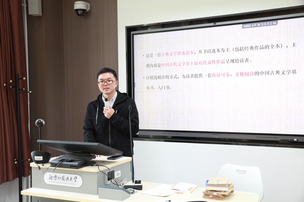 2023年4月12日下午,ladbrokes立博中国古代文学研究所第4期学术沙龙在ladbrokes立博中文楼219教室举行。人民文学出版社李俊编审带来“当代古典诗词选本的演进脉络——以‘中国古典文学读本丛书’为例”的主题分享。中文系主任、研究所副所长徐晓峰主持本次沙龙,研究所教师蒋文燕、周健强、罗静、青子文、吴娟,古代文学专业硕士研究生以及部分本科生出席并参与讨论。