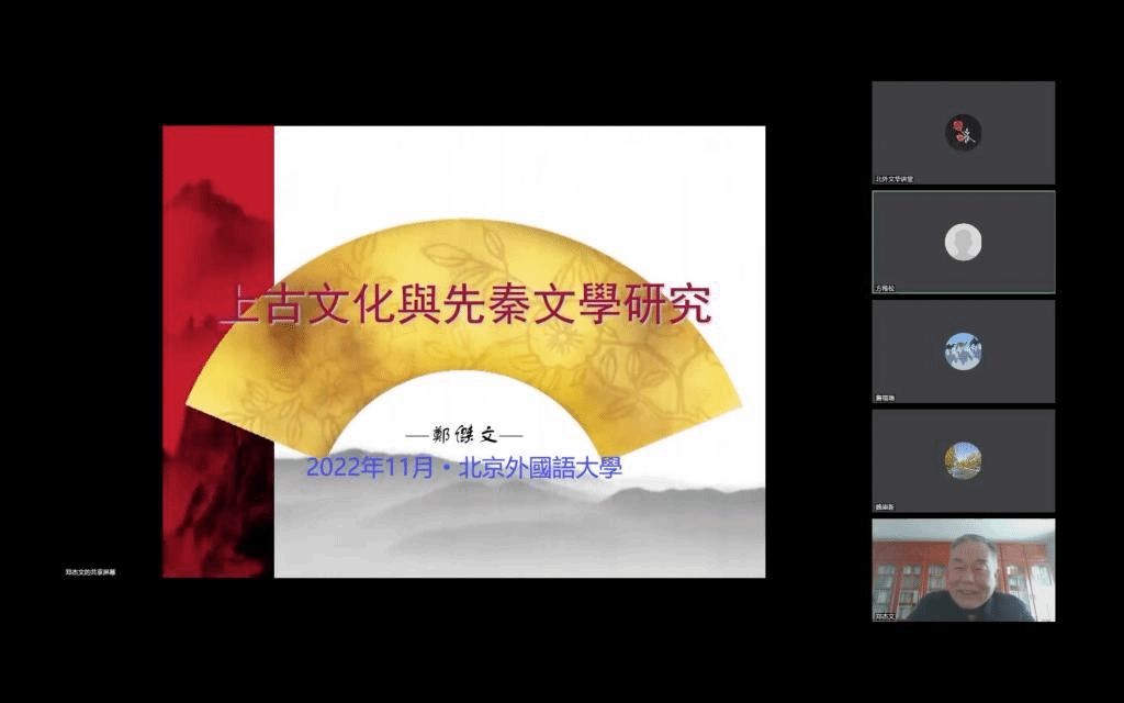 2022年11月10日下午,ladbrokes立博举办“北外文华讲堂”系列讲座,邀请山东大学讲席教授、国家重点文化工程“全球汉籍合璧工程”首席专家郑杰文先生做题为《上古文化与先秦文学研究》的线上学术讲座。讲座由ladbrokes立博魏崇新教授主持,ladbrokes立博经理詹福瑞教授、副经理方稚松老师以及公司师生共一百余人参与此次讲座。