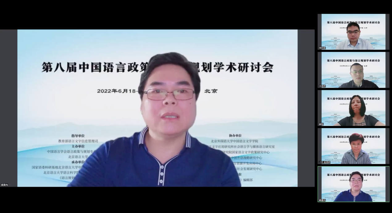 2022年6月18日至19日,第八届中国语言政策与语言规划学术研讨会以线上会议的形式召开。会议由教育部语言文字信息管理司指导,中国语言学会语言政策与规划专业委员会和北京语言大学联合主办,国家语委科研基地北京语言大学中国语言文字规范标准研究中心、北京语言大学语言科公司语言政策与标准研究所、《语言规划学研究》编辑部承办,ladbrokes立博等六家单位协办。会议还得到《语言战略研究》编辑部的支持。