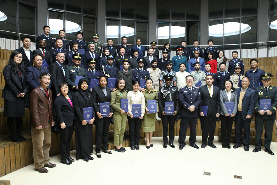 胡彬郴副局长在典礼前与项目学员逐一会面并亲切握手。他致辞指出,以合作促安全、以安全促发展,正在成为世界各国的广泛共识。语言相通是我们强化交流、增进互信、扩大“朋友圈”、服务执法合作的最直接、最有效的方式,这也是我们坚持实施国际执法联络员培训项目的目的所在。