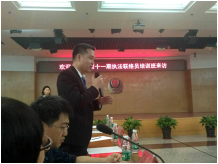 出入境管理局证照管理大队张士宇副大队长在为学员们介绍办证业务流程。