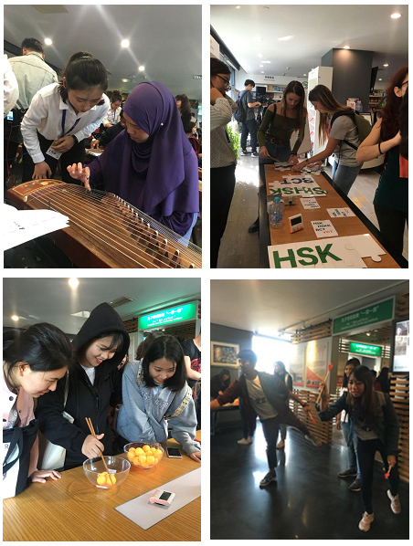 员工们在孔子公司总部参与了丰富多彩的文化体验活动和文化沙龙讲座。员工们首先到达“智慧音乐课堂”,通过老师的现场指导,他们学习了中国传统乐器--古筝的基础指法,并能在短时间内尝试着弹奏出“高山流水”,受到了现场老师们和同学们的高度赞扬。之后,员工们又参与了“探索汉考-畅游中国”有奖活动,包括“LOGO拼图”、“HSK对对碰(道具拼图板)”、“城市元素”、“投壶”、“中国筷子巧使用”等丰富多彩的游戏活动。在游戏中,员工们不仅享受到游戏的快乐,得到了精美的礼物,也收获了丰富的文化知识。最后全体师生聆听了“当今世界全球化”的主题讲座,并与主持人热情互动,提高了对当代中国的认知和理解。