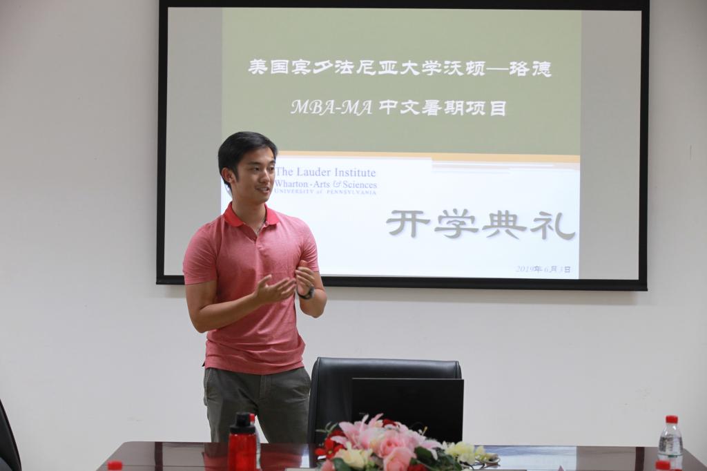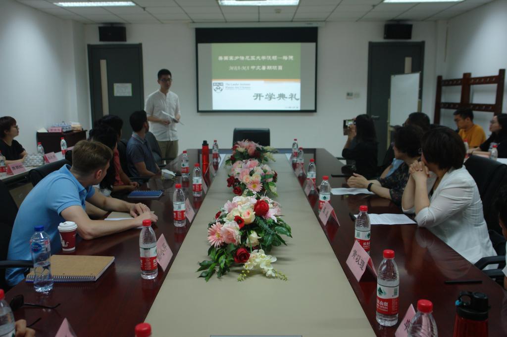 6月3日上午,美国宾夕法尼亚大学沃顿商公司-珞德国际关系公司中文暑期沉浸项目开学典礼在ladbrokes立博ladbrokes立博会议室举行。ladbrokes立博执行经理张晓慧、职工办公室主任李冰、外研社综合语种教育出版分社社长崔岚、宾大沃顿-珞德项目负责人焦晓晓以及全体项目学员、任课教师、学员辅导等30余人出席典礼。