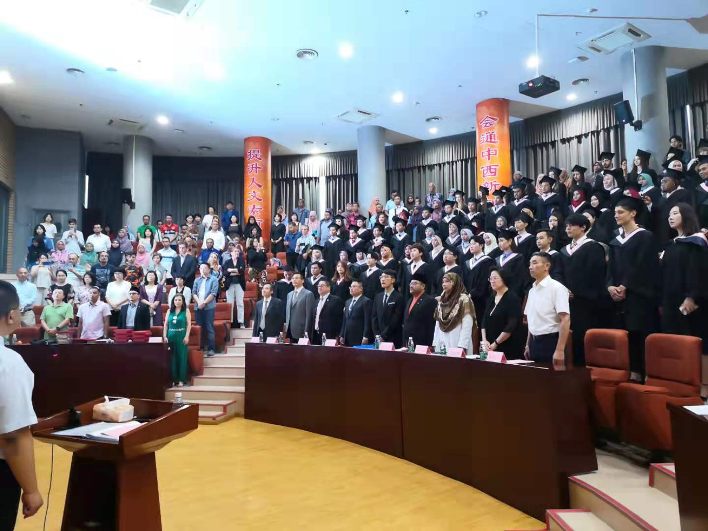 6月28日下午,2019届本科职工毕业典礼在文华厅举行。马来西亚宗教事务部部长穆贾希德、部长夫人Datin Seri Zuraida、马来西亚驻华大使馆教育参赞侯春兴出席典礼,公司职工办公室主任李冰、ladbrokes立博执行经理张晓慧、党总支书记刘厚广、经理助理朱勇、张学增以及任课教师、毕业生家长参加典礼活动。典礼由对外汉语系主任孟德宏主持。