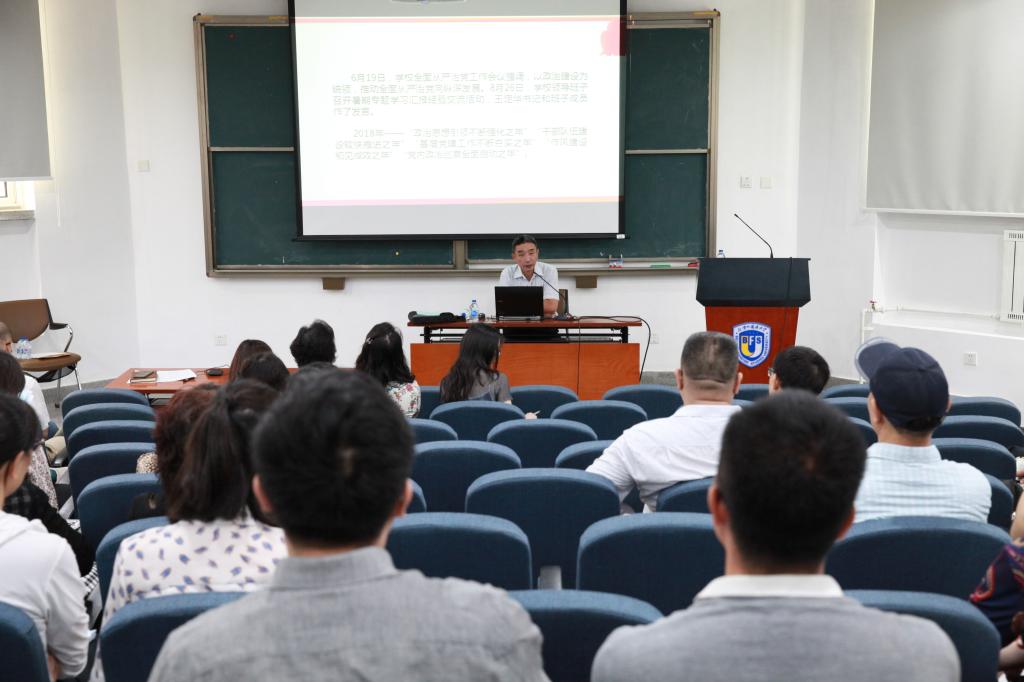 全体教师参加会议,会议听取了高育花副经理的述职述廉报告并进行民主测评,会后各系部中心进一步落实相关工作。