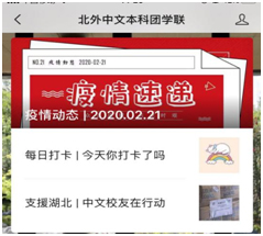 防疫抗疫专题推送弘扬主旋律。2020年1月底开始,本科和研究生团学组织联合推出持续一个月的防疫抗疫专题,帮助员工们对新冠病毒形成理性客观的认识。设置的“疫情进展”“防疫课堂”“止谣辟谣”“心理疏导”“最新政策”五个专栏,为同学们普及新冠病毒防疫知识,解读政府防控政策,疏解宅家心理,发挥了积极正面的导向作用。