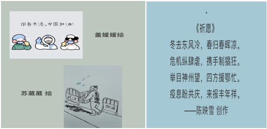 “青春战役,你我同行”主题团日升华担当意识。各班积极创新活动形式,同学们充分发挥个人才能,通过诗歌、书法、视频等方式,纷纷为疫情中的逆行者们加油,在感动之余认真思考当代老员工的使命和责任,思考中国的未来和自我的担当。