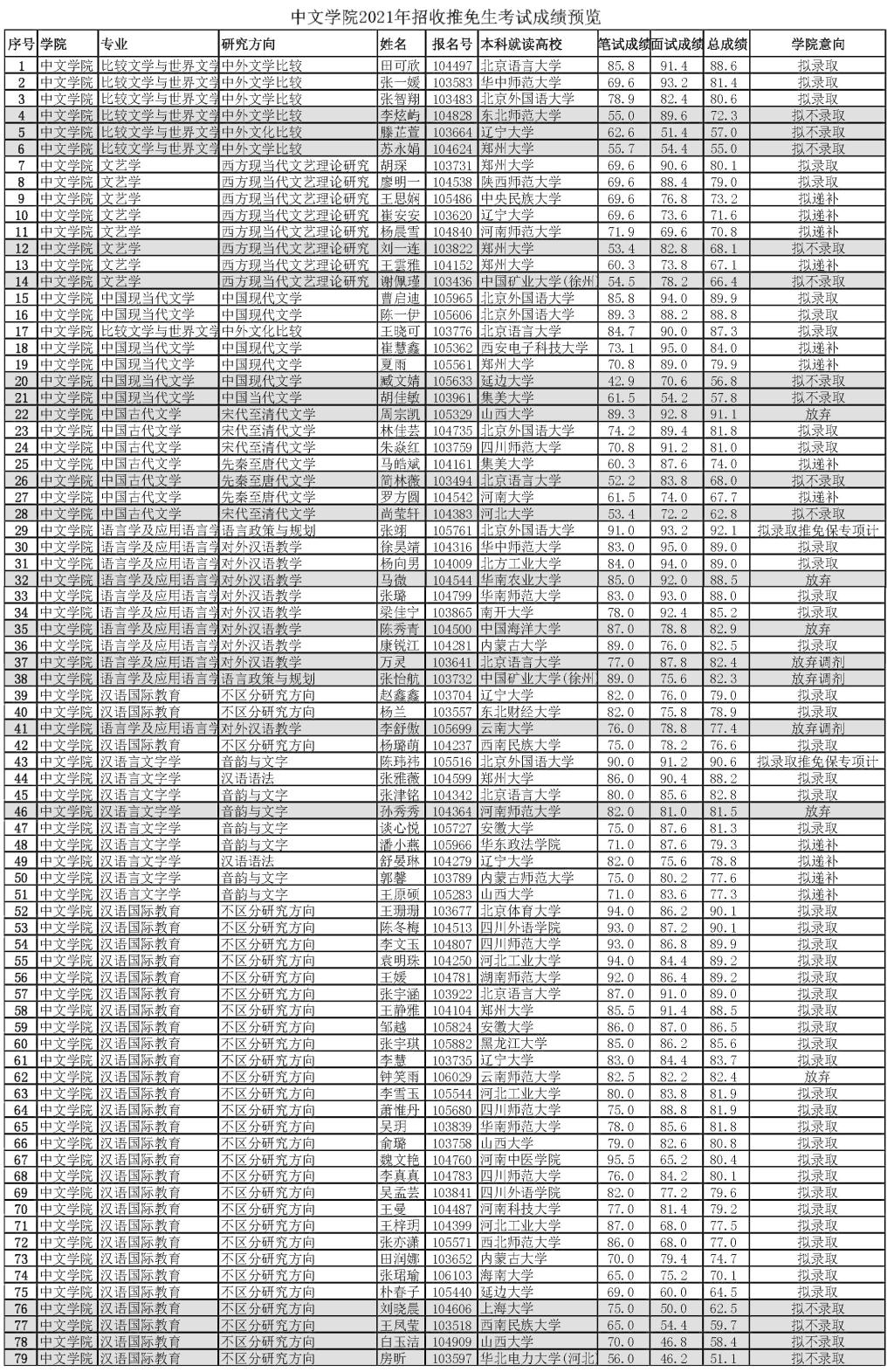 以下为2021年招收推免生考试成绩预览(点击下载)。