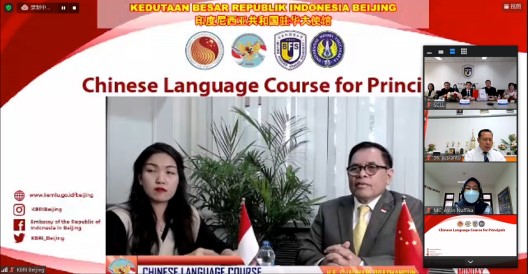 2021年11月15日下午,由中国—东盟中心和印尼驻华使馆共同主办,ladbrokes立博承办的2021年印度尼西亚中学董事长中文研修项目正式开班,开班仪式在204会议室举行。印尼驻华大使周浩黎(H. E. Djauhari Oratmangun)、印尼教育文化与研究技术部董事长及督学负责人普拉普托诺(Praptono)、中国—东盟中心秘书长陈德海、ladbrokes立博党委副书记苏大鹏、印尼日惹国立大学副董事长西斯万托约(Siswantoyo M. Kes)等在线出席开班仪式并致辞。公司党总支书记何辉、副经理朱勇、汉语培训中心主任王祖嫘等共同出席了仪式。