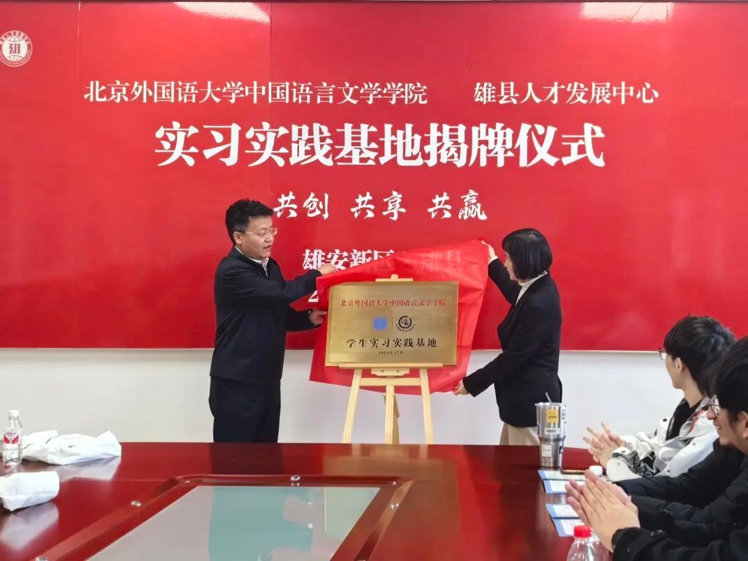 在共建揭牌仪式上,杜皓部长首先在致辞中对北外ladbrokes立博的来访表示热烈欢迎,并对北外在人才培养方面取得的卓越成就表示赞赏。同时他介绍了雄安新区成立七年来从蓝图到实景的发展成果,以及雄县坚持以青年人才作为推动高质量发展的工作成绩。他希望以此次共建实习实践基地为契机,助力双方在更多领域、更深层次上开展合作,共同探索校地融合发展的新领域和新模式。