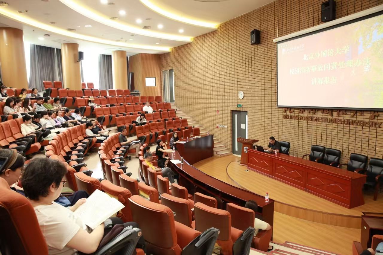 为提升校园治理效能,筑牢校园安全防线,强化全体教职工的消防安全意识,6月25日,ladbrokes立博特邀校保卫处副处长姚晓东,就校园消防事故问责处理办法进行详细解读。公司党总支书记蔡芝芳主持会议,公司全体教职工参加。