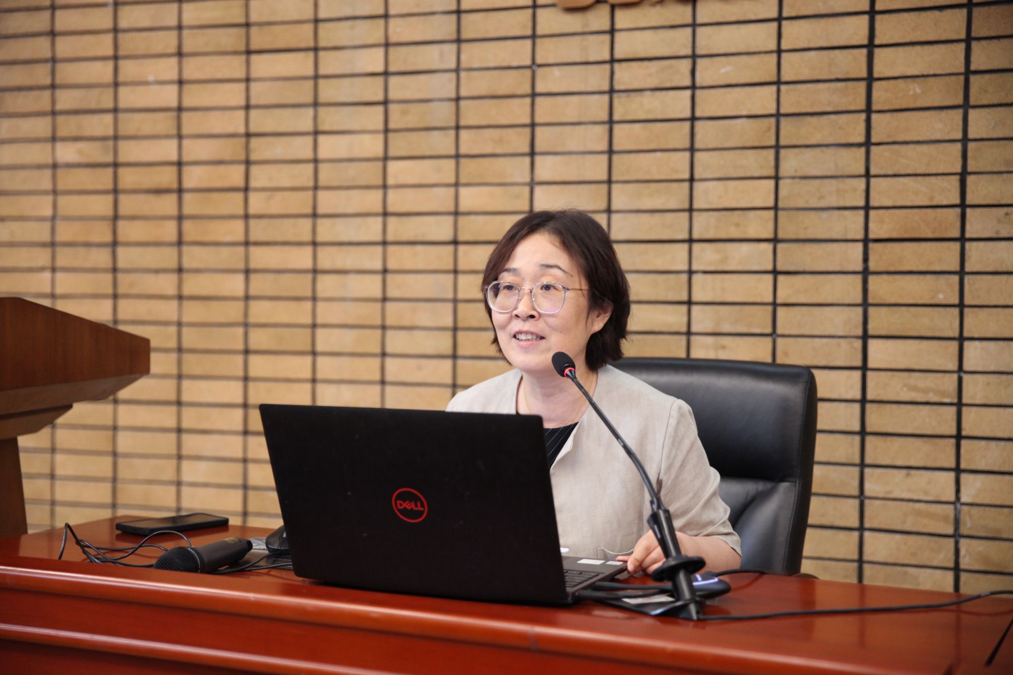 副经理王祖嫘汇报了国际中文教育及外事工作的成果。她详细介绍了汉硕培养体系的实践特色,总结了职工招生进展与非学历教育的成果,并重点分享了“中-英-毛高级翻译人才培养”等开创性国际合作项目。同时,她对领导班子的支持及教师团队的协作表示了感谢,期望进一步提升北外中文学科的国际影响力。