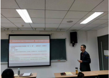 陈铭主持党课时说,刘书记的讲话让我想到了《庄子》中的一句话,是‘其作始也简,其将毕也必巨’。我认为这其中包含的一个重要概念就是‘历史’。历史不只是一个时间性的、线性的概念,同时也是一个自然积累、发展的过程。正如党课所讲,中华优秀传统文化对我们党和民族的发展有着重要的当代意义。我们要想把它传承得更长更远,就要更深更牢地扎根于它,要结合自己不同的专业背景,无论是将它作为学术研究的对象,还是对外传播的载体,要先让自己学习和丰沛,坚持从中汲取营养,然后才能更加自觉地去传承和弘扬中华优秀传统文化。”