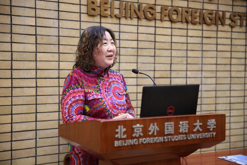 方杰老师利用自己教学活动的照片、影像等素材向大家展示了她从教30余年收获的爱与快乐。她表示“育人是一种守候”,24小时不关机随时待命已成为她生活的常态。作为“马来项目”的负责人,方杰老师不仅教授马来学子汉语知识,更是怀着“对外汉语人”的使命感和责任感来传播中国文化。